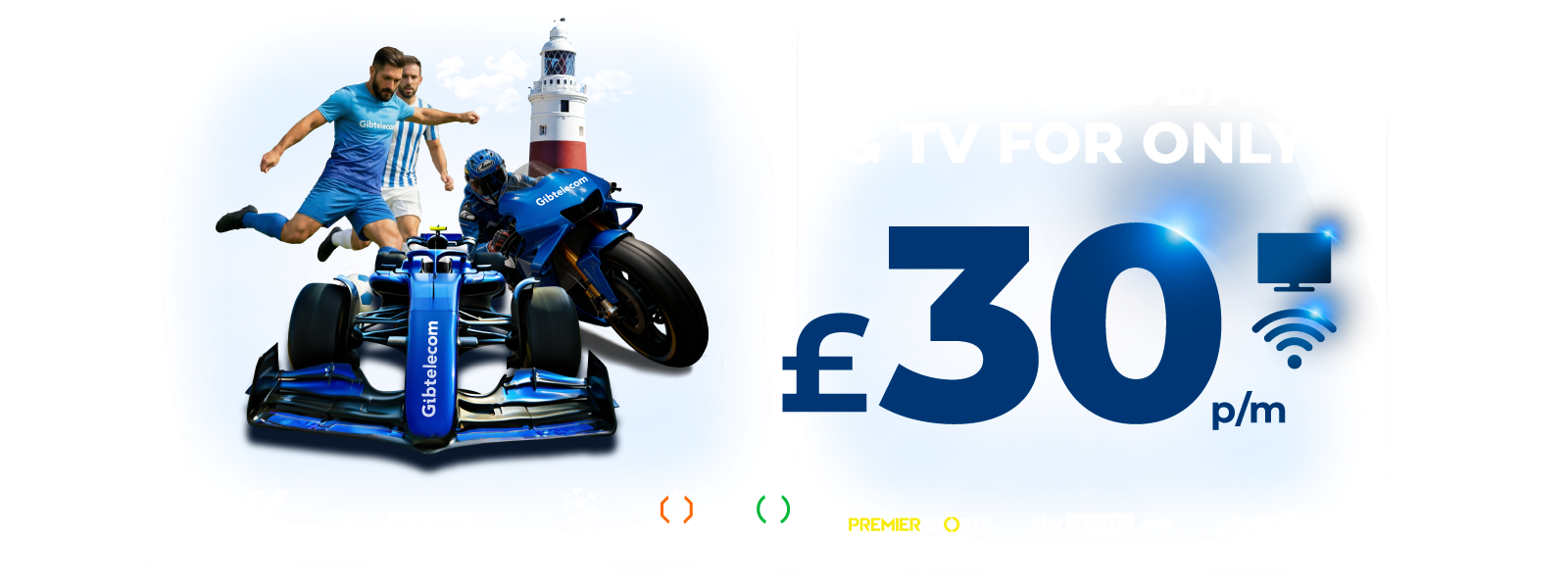 Gibtelecom TV is exclusively available with our broadband. You can also choose from one of our great value bundles which combine TV, broadband and either a Pay Monthly SIM plan or landline.